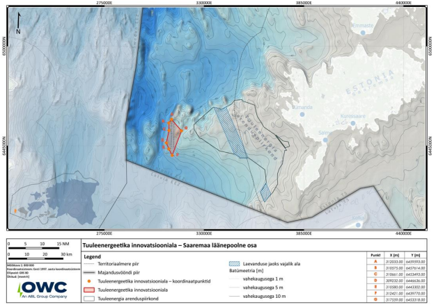 Saskaņā ar iesniegto informāciju, Paredzētās darbības norises vieta atrodas uz rietumiem no Sāremā salas, aptuveni 78 km attālumā no Latvijas Republikas sauszemes teritorijas. Paredzētās darbības ierosinātājs Oxan Energy Paredzētās darbības norises vietā 88 km2 platībā plāno līdz 60 vēja elektrostaciju būvniecību ar kopējo jaudu līdz 900 MW (katras maksimālā jauda līdz 30 MW, augstums līdz 365 m virs jūras līmeņa), kā arī maksimāli trīs apakšstaciju, trīs ūdeņraža ražošanas platformu un sešu iekārtu aļģu audzēšanai būvniecību.